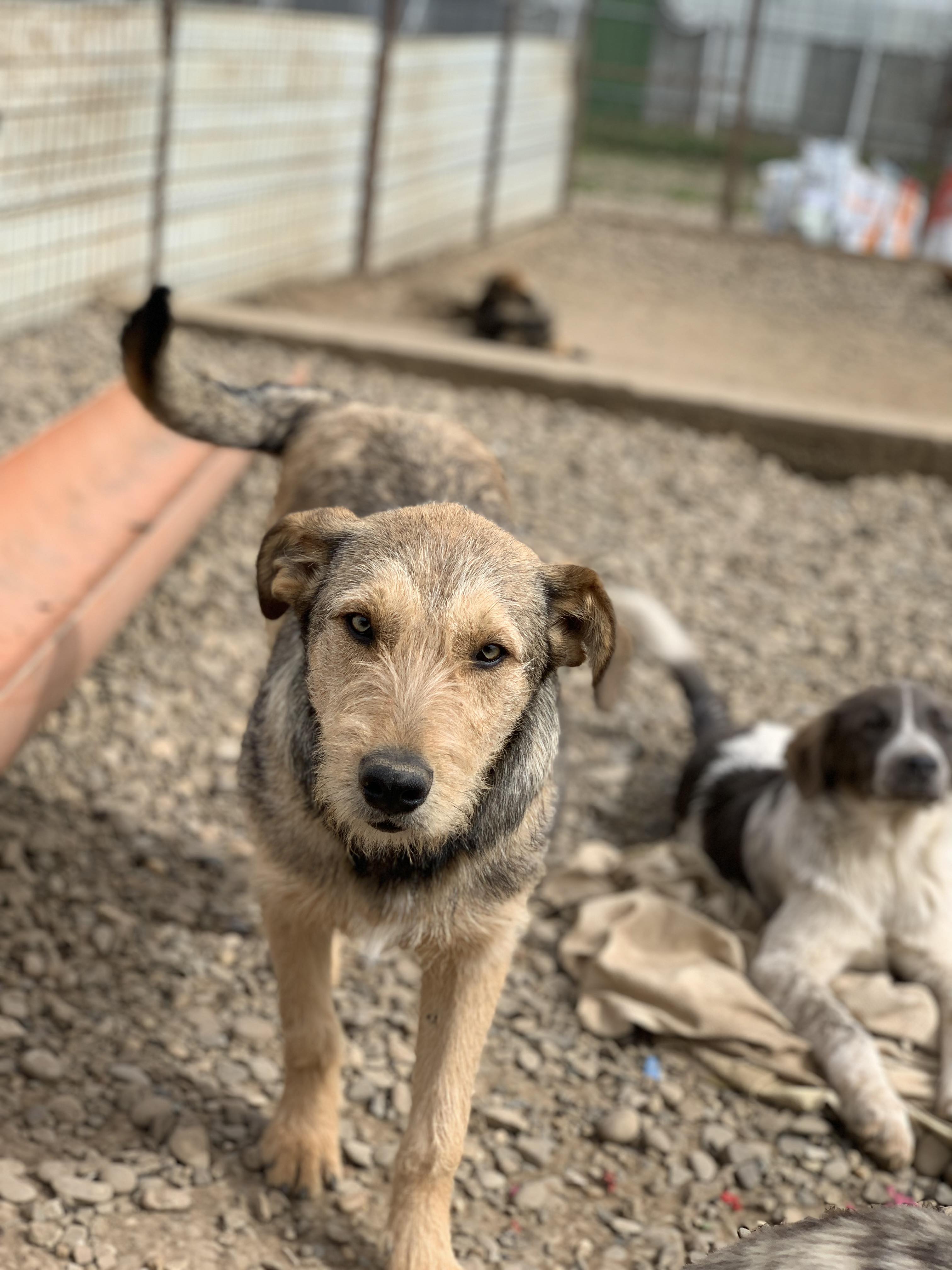 Denna fina kille heter Licas och han är född september 2023. Han hittades som valp med hans syskon i en närliggande vinodling hos Mirela. Licas bor fortfarande kvar på sheltret hos Mirela i väntan på sitt hem. Han är en stor kille med mycket energi och glädje. Han är väldigt social och framåt med människor och funkar väldigt bra med de andra hundarna.
