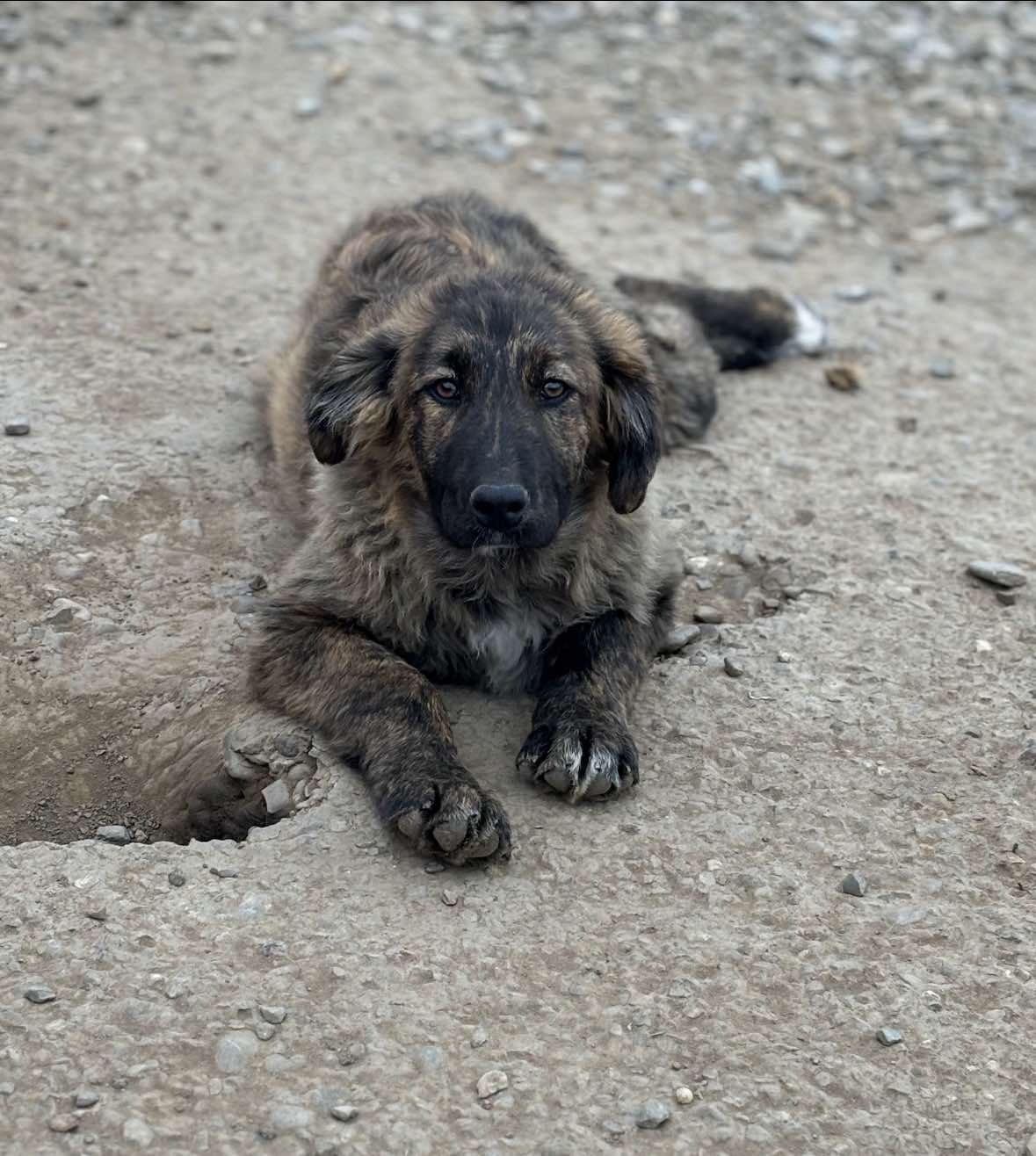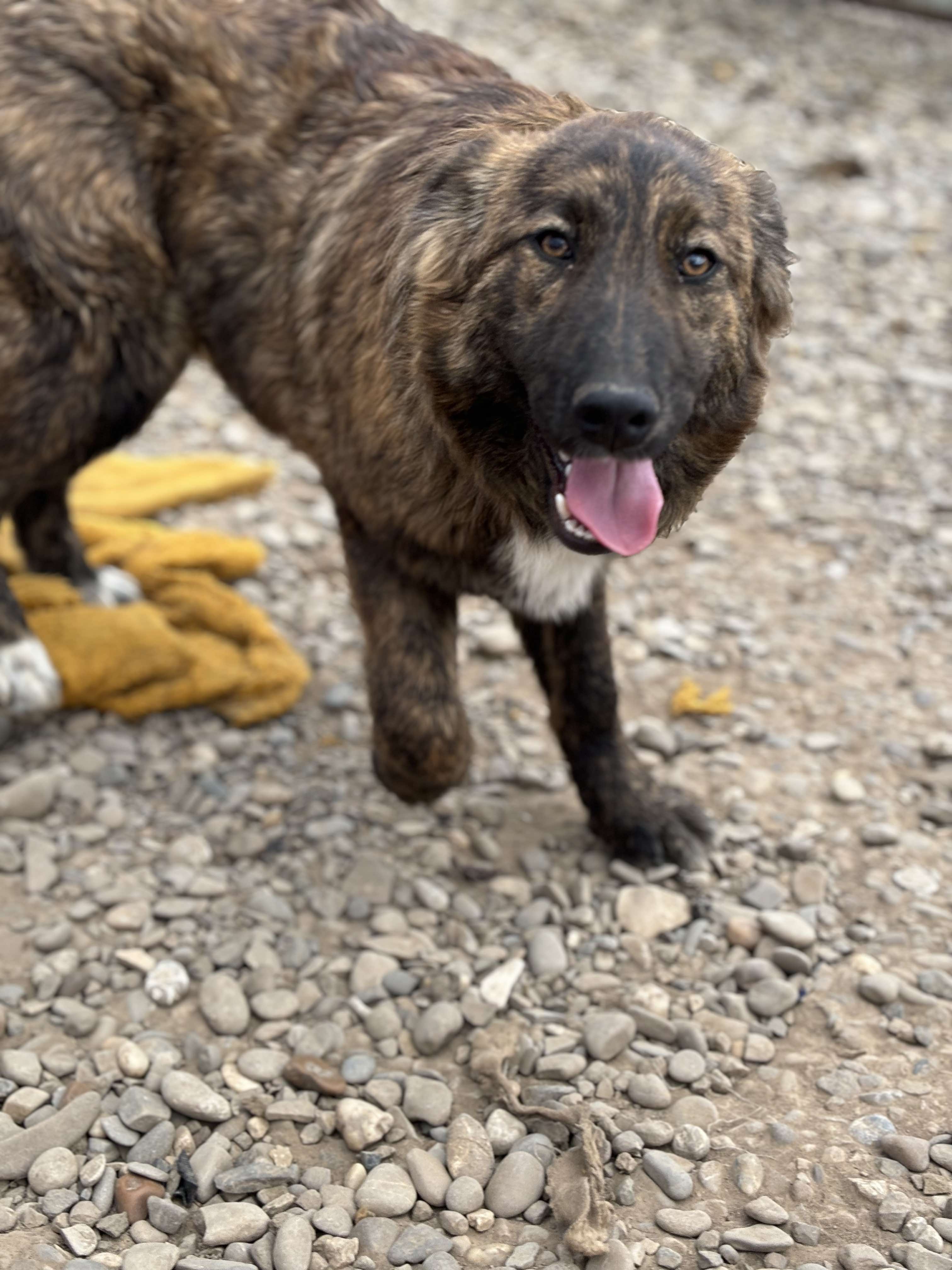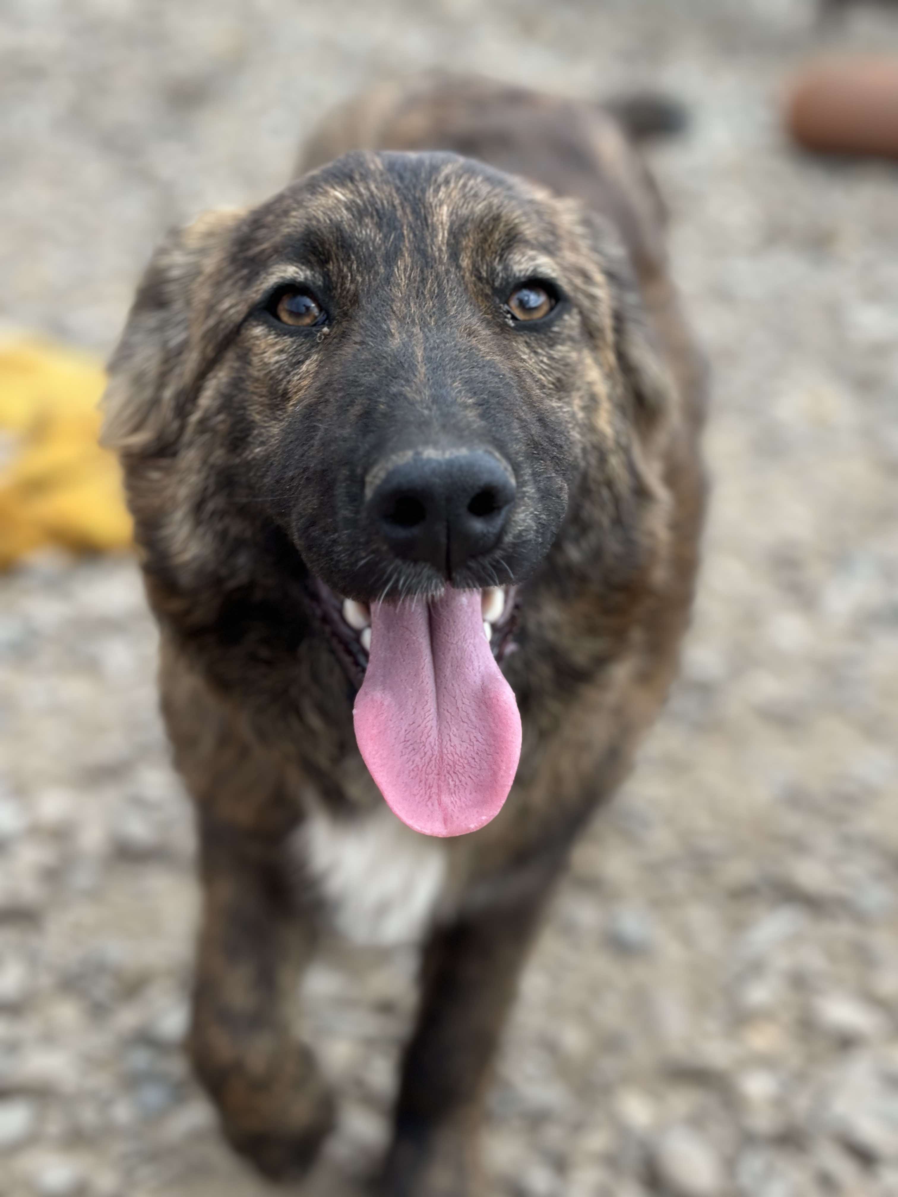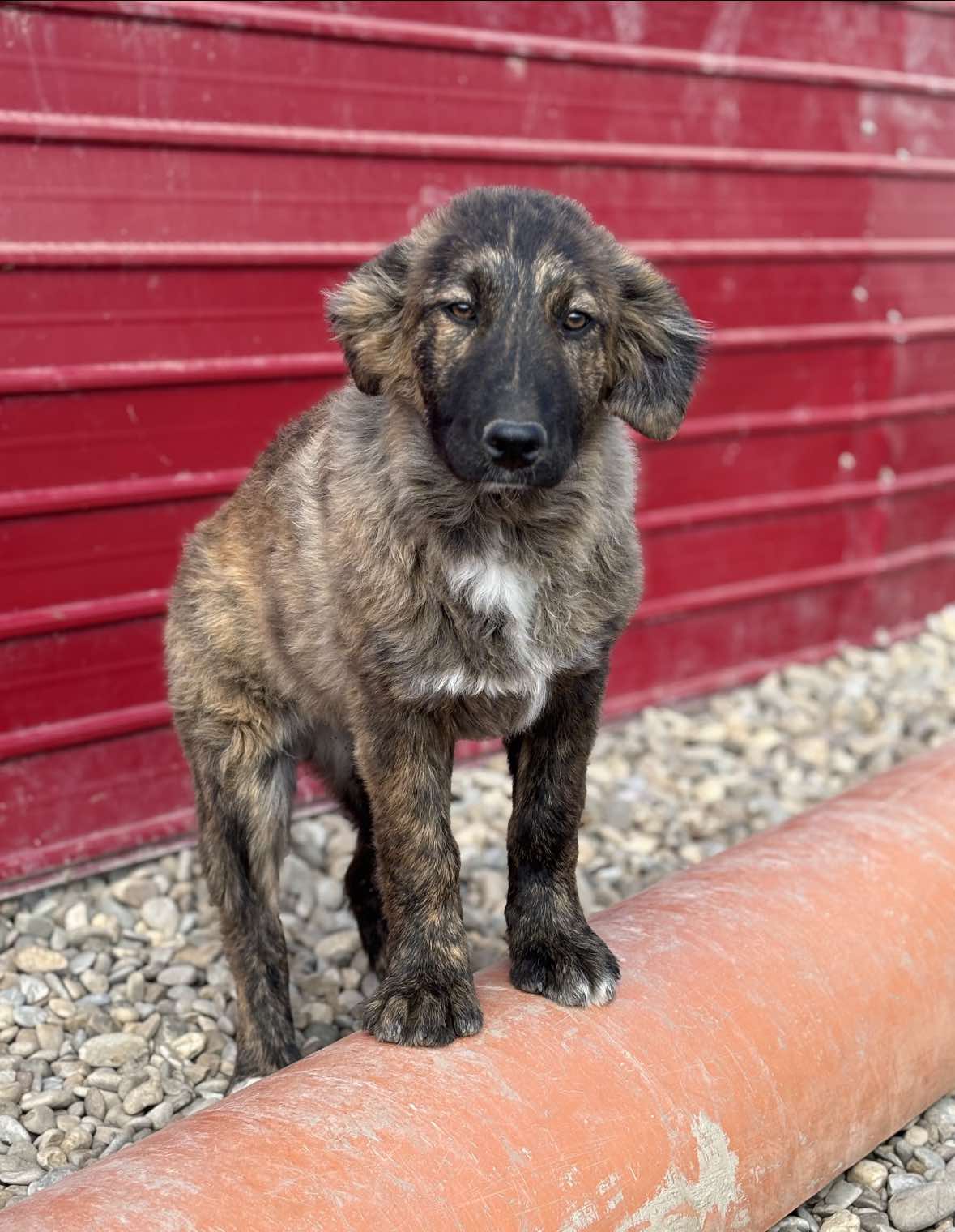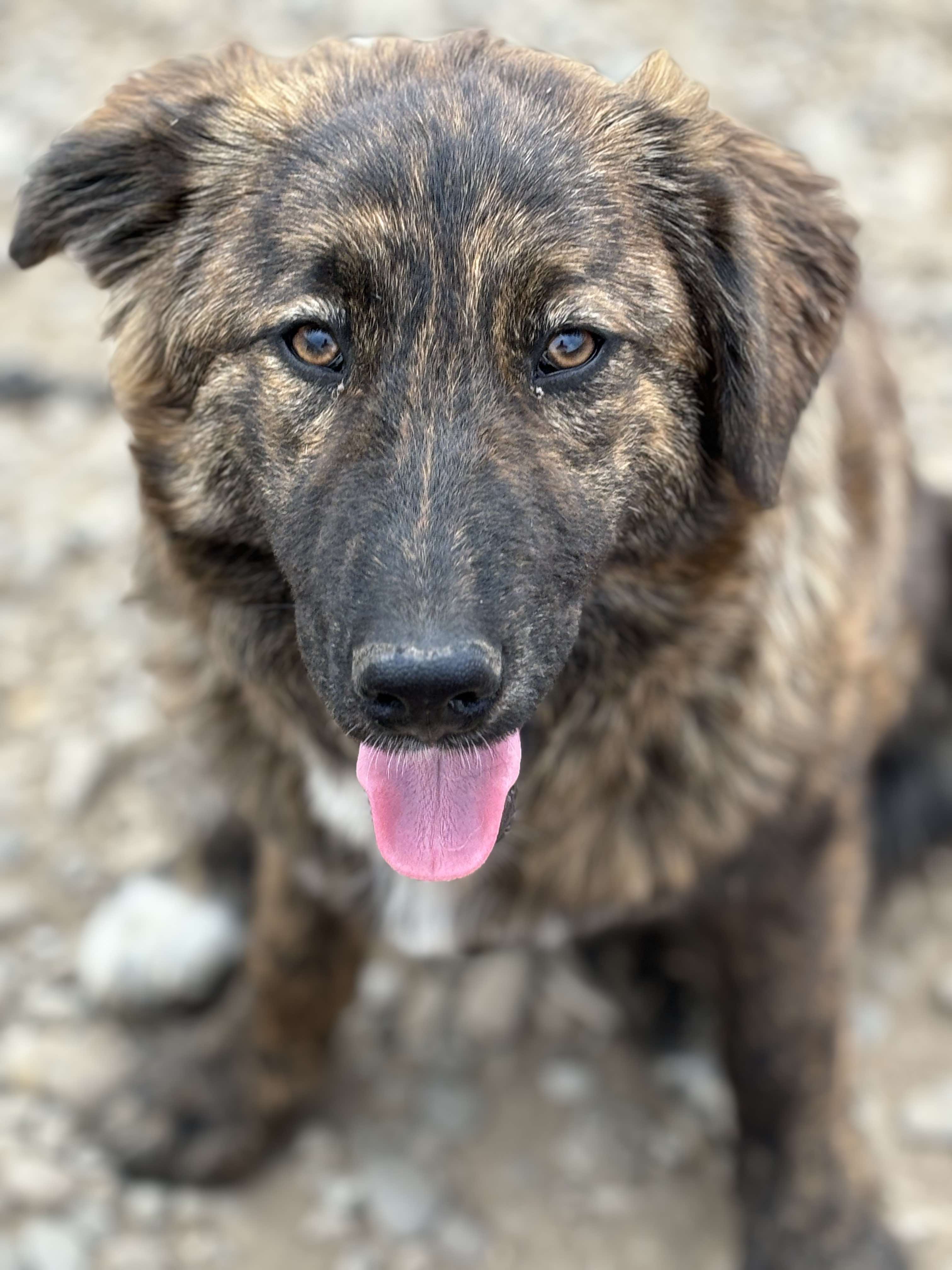 Denna fina tjej heter Caosmea och hon är född september 2024. Hon och hennes syskon är herdehundsblandras och beräknas väga cirka 35 kg som vuxna.