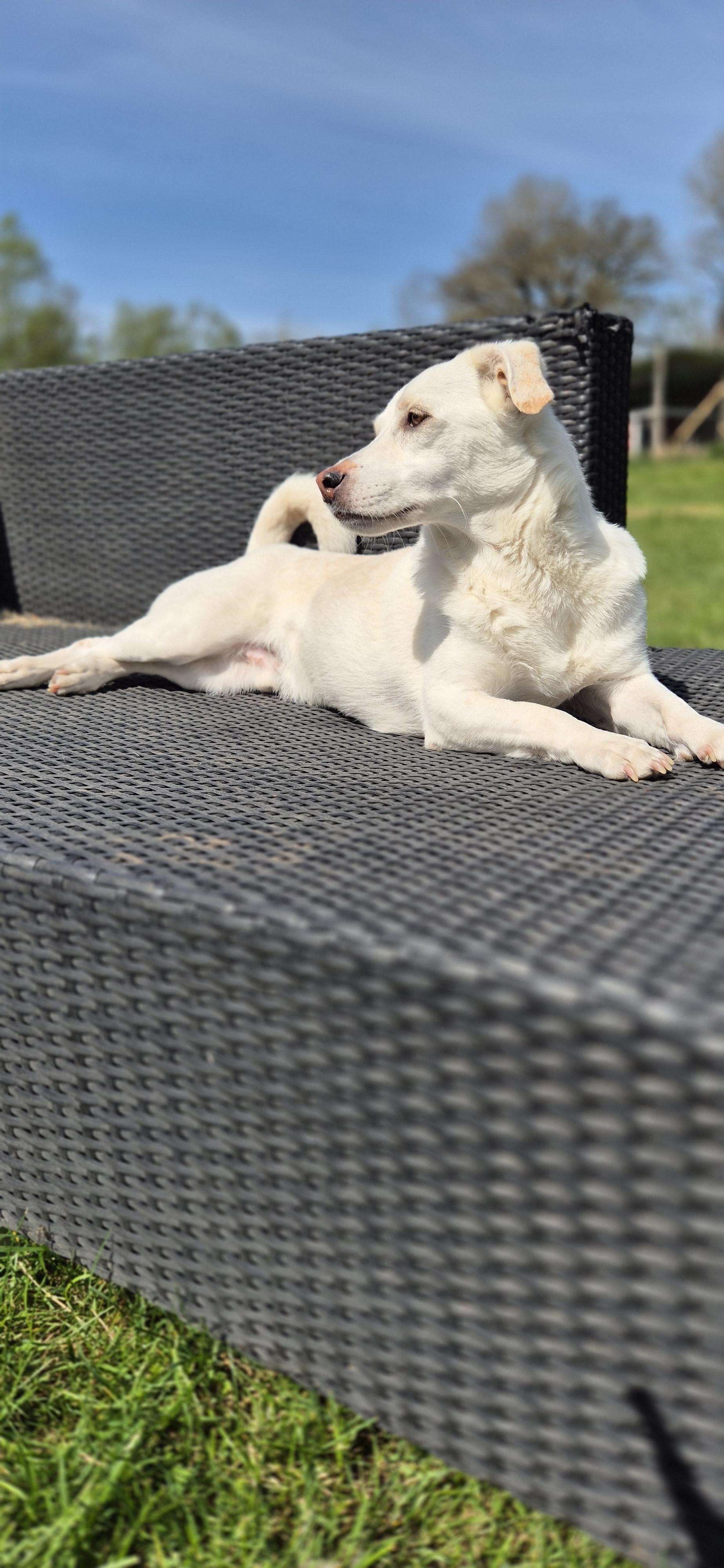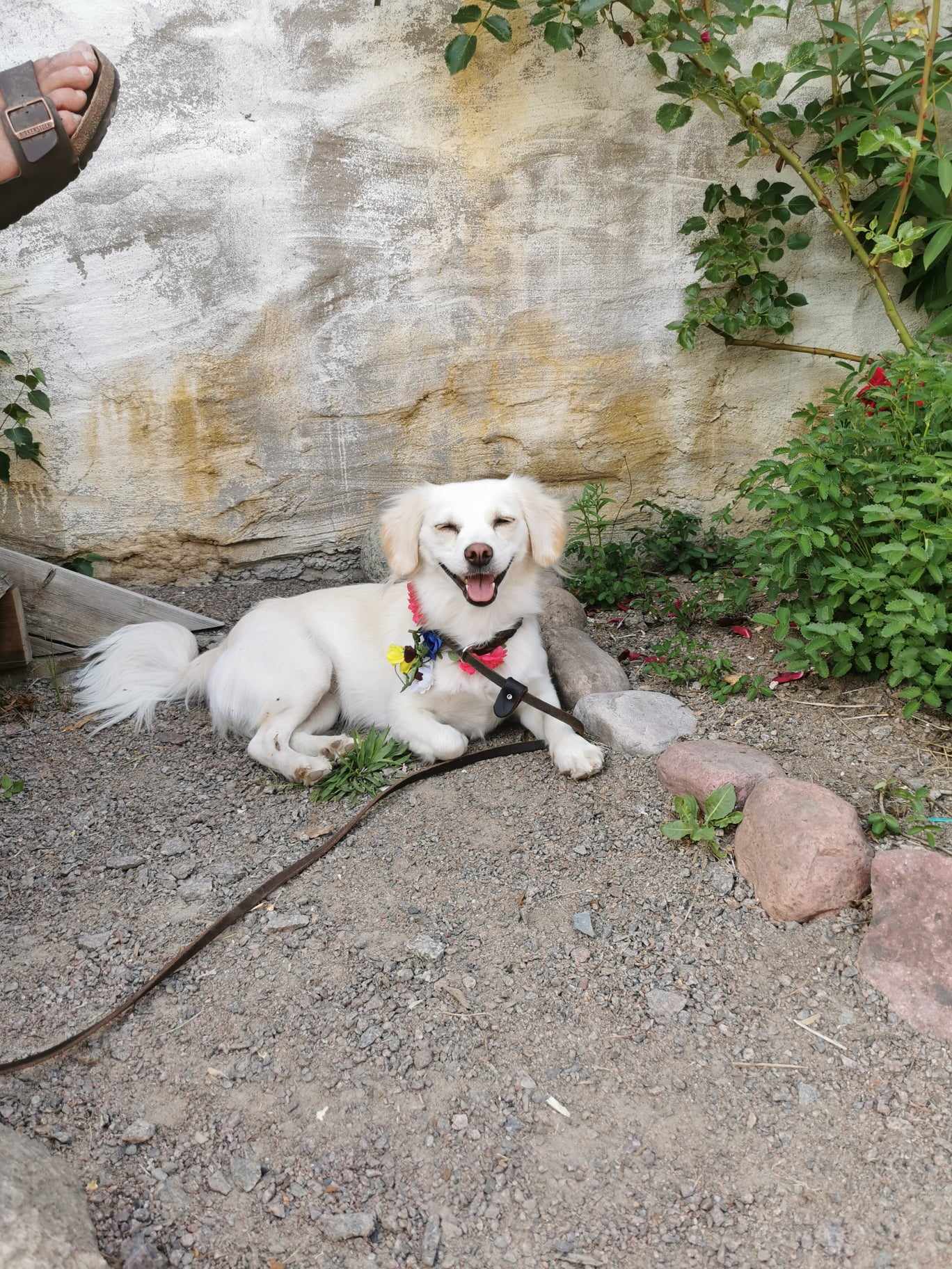 Zingo är en väldigt härlig hund, han är alltid redo att få magen kliad och han tycker om att gå på promenader och hänga i trädgården. Att sova och ha det mysigt är också en stor favorit. Han är också lite försiktig, och det kan ta en stund innan han värmer upp inför främlingar. Det har tagit en stund för honom att känna sig trygg med oss också, och det är så roligt att se framstegen som han gör. Situationer som var jobbiga i början tar han lätt idag, som att åka i bilen eller möta läskiga kossor. Vi är så glada att just Zingo kom till oss, han har lärt oss så mycket och han har en självklar plats i vårt hem idag.