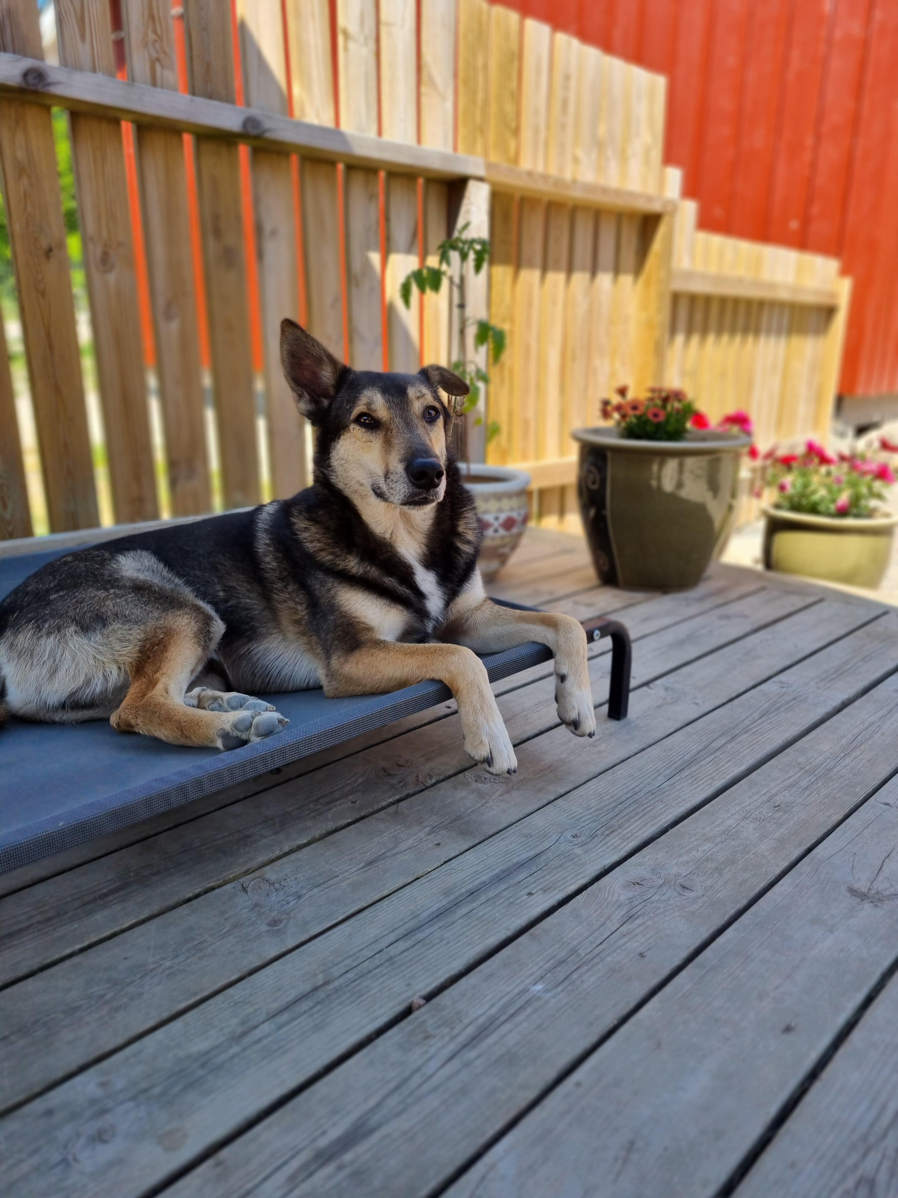 Leya är en trygg och klok hund som vill vara med på det mesta. Hon älskar att springa lös i skogen och i fjällen. Det känns som om hon kan gå/springa hur långt som helst, men trivs också väldigt bra när hon ligger och latar sig i soffan. Vi fick otroligt bra stöd från Nicholas och Emelie både inför att vi skulle hämta Leya och även efter vi kommit hem med henne. Det var såklart en omställning för Leya att flytta och bo i lägenhet men det har gått jättebra. Det känns tryggt att vi kan kontakta Nicholas och Emelie med frågor, både stora som små.