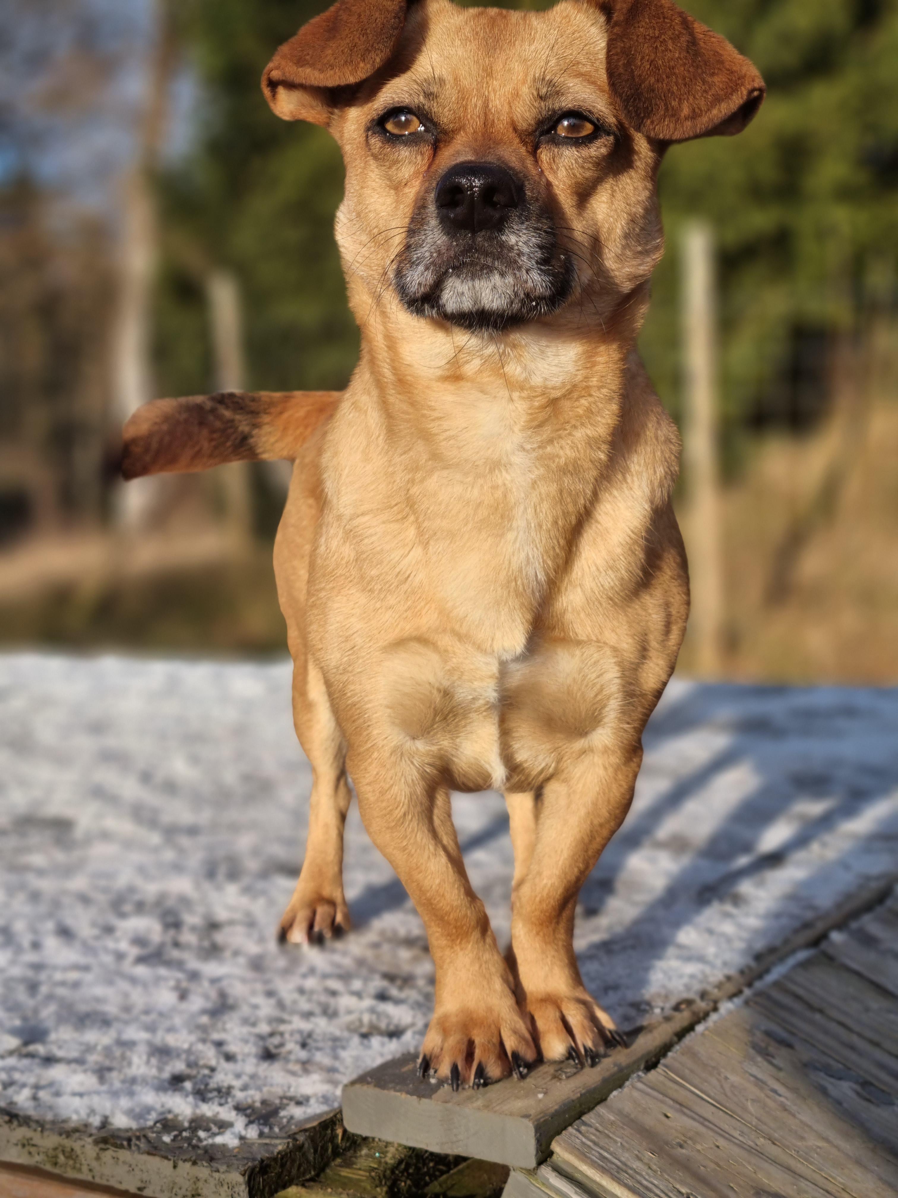 Pepsi är ett litet charmtroll med skinn på näsan och extremt rolig och okomplicerad på många sätt. Han älskar verkligen närhet och mys men kan samtidigt sova gott i sin säng eller soffan om man ber honom om det, då däckar han och snarkar högt. Han är ett litet energiknippe som älskar att busa! Han är en riktig liten polis som säger ifrån när vår andra hund ex smyger upp i soffan (som han inte får) och gärna lägger sig i allt om han får möjlighet. Han är enkel med människor och barn, han är intresserad men samtidigt respektfull så länge han får samma bemötande tillbaka. Han har lätt för att slappna av i lugna miljöer men tycker det är svårare i mer stressiga miljöer - så där behöver han vägledning. Vi är så otroligt tacksamma för att vi fick chansen att ge Pepsi sitt föralltid hem och han ger oss så mycket glädje varje dag ❤️