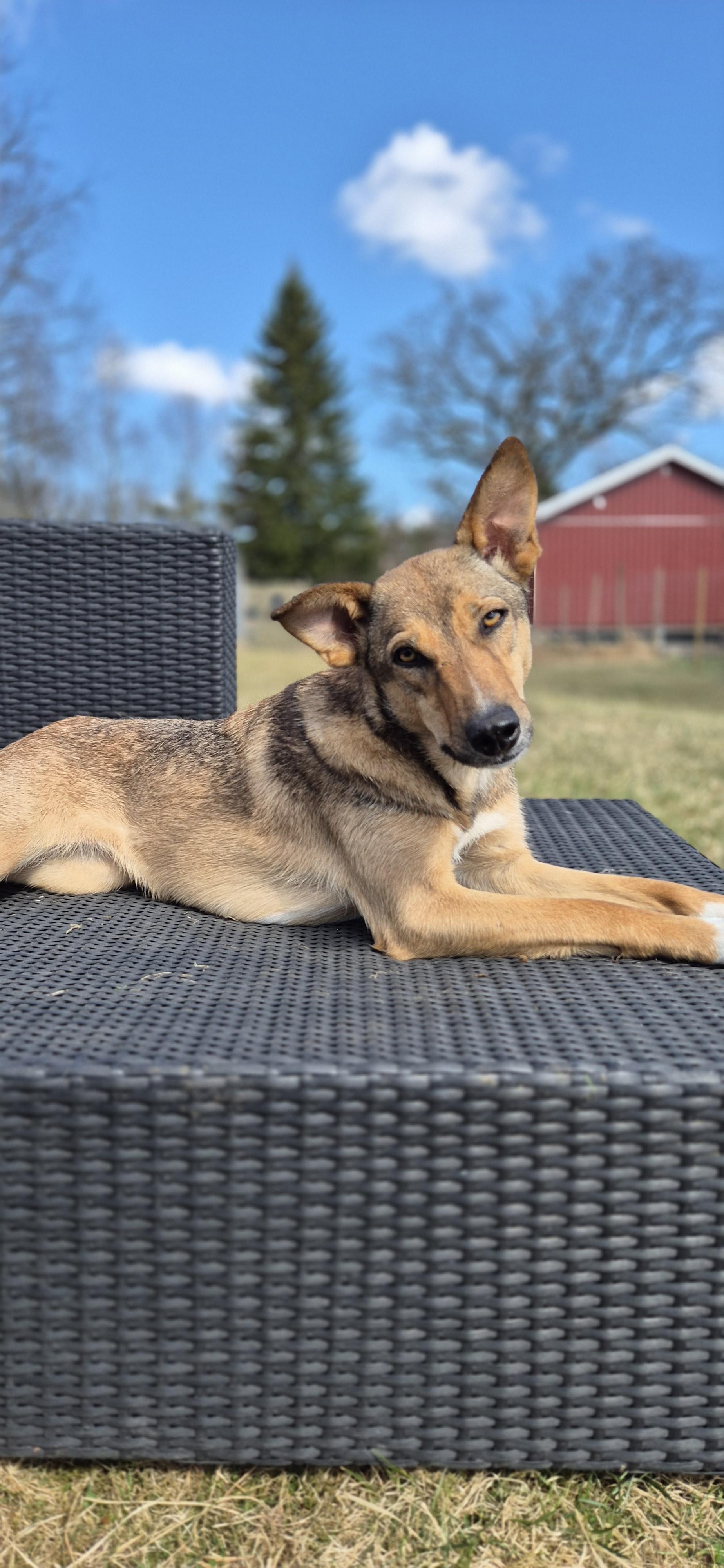 Leya är en trygg och klok hund som vill vara med på det mesta. Hon älskar att springa lös i skogen och i fjällen. Det känns som om hon kan gå/springa hur långt som helst, men trivs också väldigt bra när hon ligger och latar sig i soffan. Vi fick otroligt bra stöd från Nicholas och Emelie både inför att vi skulle hämta Leya och även efter vi kommit hem med henne. Det var såklart en omställning för Leya att flytta och bo i lägenhet men det har gått jättebra. Det känns tryggt att vi kan kontakta Nicholas och Emelie med frågor, både stora som små.